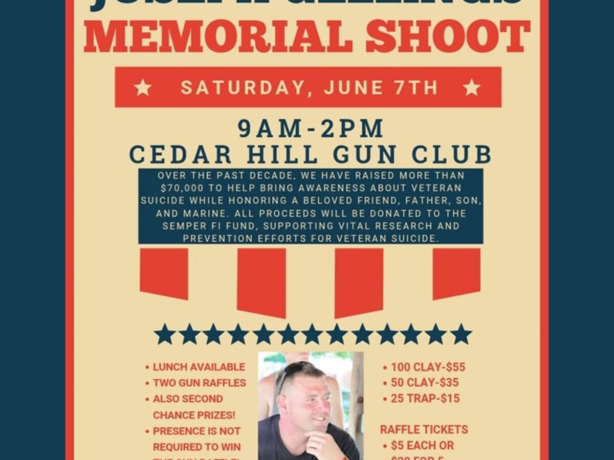 This event has passed.Find Another Event Events 11th Annual Joseph Gellings Memorial Shoot June 7, 2025 Date June 7, 2025 Come out for the 11th annual event that honors the memory of Marine Joe Gellings and raises funds for veteran suicide prevention. Date: Saturday, June 7th, 2025 Location: Cedar Hill Gun Club, 918 E 1650 Rd, Baldwin City, KS 66006 Time: 9 AM – 2 PM Clay Shoot: 100 clay – $55 50 clay – $35 25 trap – $15 Lunch and raffle opportunities are also available! Joseph Gellings Memorial Facebook can be found HERE. Questions? Email joegellingsmemorialfund@gmail.com. Semper Fi & America’s Fund is honored to be the beneficiary of this event.