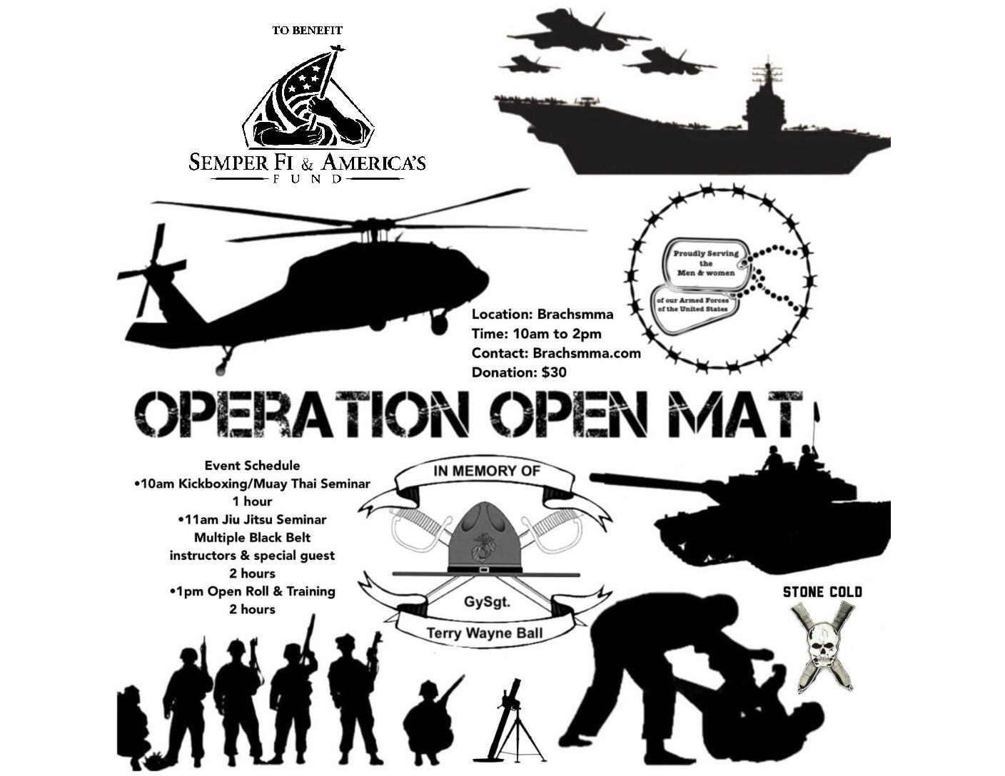 This event has passed.Find Another Event Events Operation Open Mat 2025 November 9, 2025 Date November 9, 2025 Brachs MMA will be hosting an Operation Open Mat event in memory of GySgt Terry Wayne Ball. There will be Kickboxing, Muay Thai, and Jiu Jitsu seminars as well as an Open Roll. Bring a $30 donation to participate! Location: Brachs MMA – 1227 Haddonfield-Berlin Rd., Vorhees, NJ Date: November 9, 2025 Time: 10 AM – 2 PM For more information, check out their website at https://www.brachsmma.com/ or their Facebook HERE. Thank you to Brach’s MMA for your unwavering commitment to our mission and the heroes we serve.