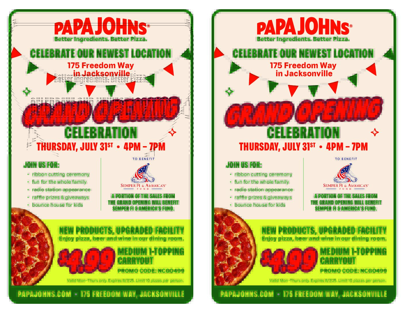 Come celebrate Papa Johns new location opening in Jacksonville, NC!